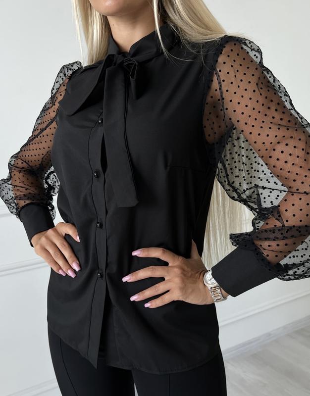 арт. nao. 1003 Ткань: софт + сетка горох Бант съемный. Гудзики рабочие (жемчуг). Воротник стойка. Отличное качество. Размеры: 42-44, 46-48