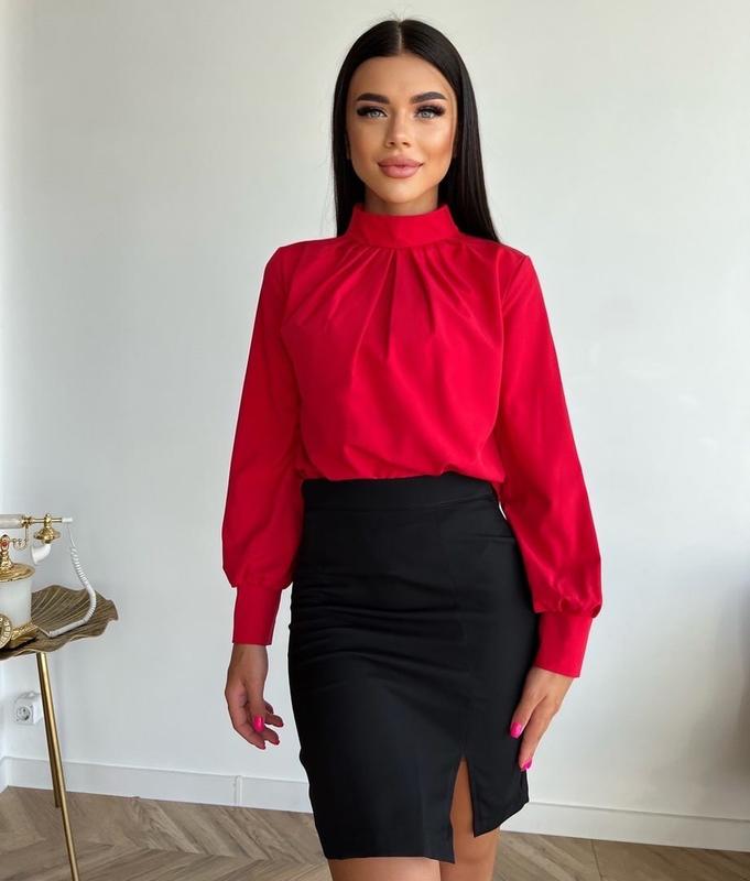 Блузка софт с воротником деловая женская с длинными рукавами