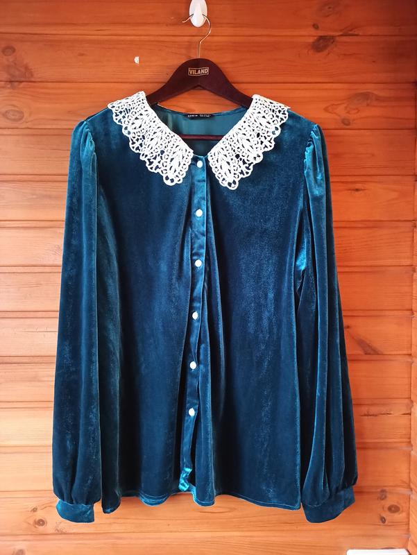 Бархатная блузка с кружевным воротником. состояние идеальное, без дефектов, размер XL (английской 18-20) длина 61 см плечи 41-52 см НОГ 63-66 см НО низ 64 см длина рукава 65 см