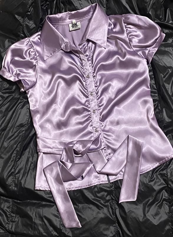 Нарядная атласная блузка нежно сиреневого цвета, состояние новой, пуговицы кристалл (стекло)