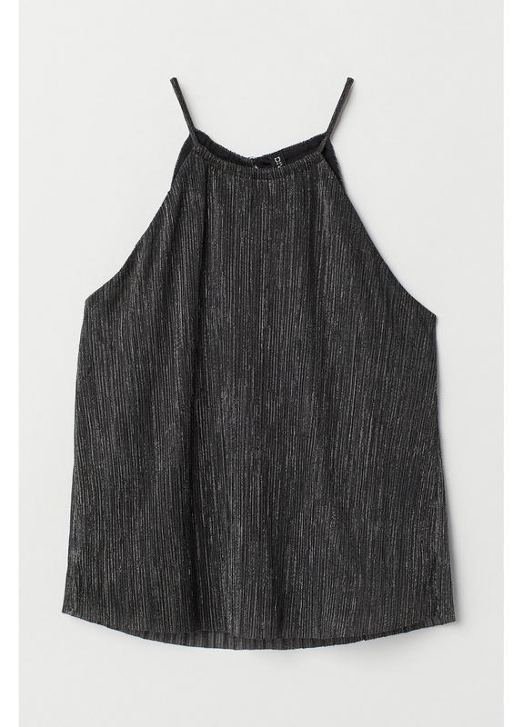 Замеры по изделию: 34 Обхват груди - 88 см Блуза со складками из тканого материала с узким вырезом из блестящих нитей сверху с короткими узкими бретелями и граненой пуговицей сзади. На подкладке. Возможно повреждение бирки 0669710_ч_блест_08