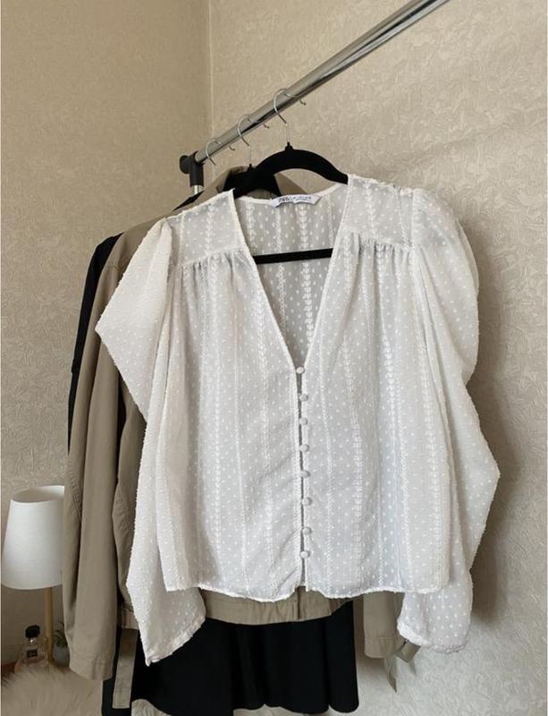 Нежная блузка от бренда zara Объемный рукав фонарик Ткань чуточку просвечивает Размер L Состояние новой вещи
