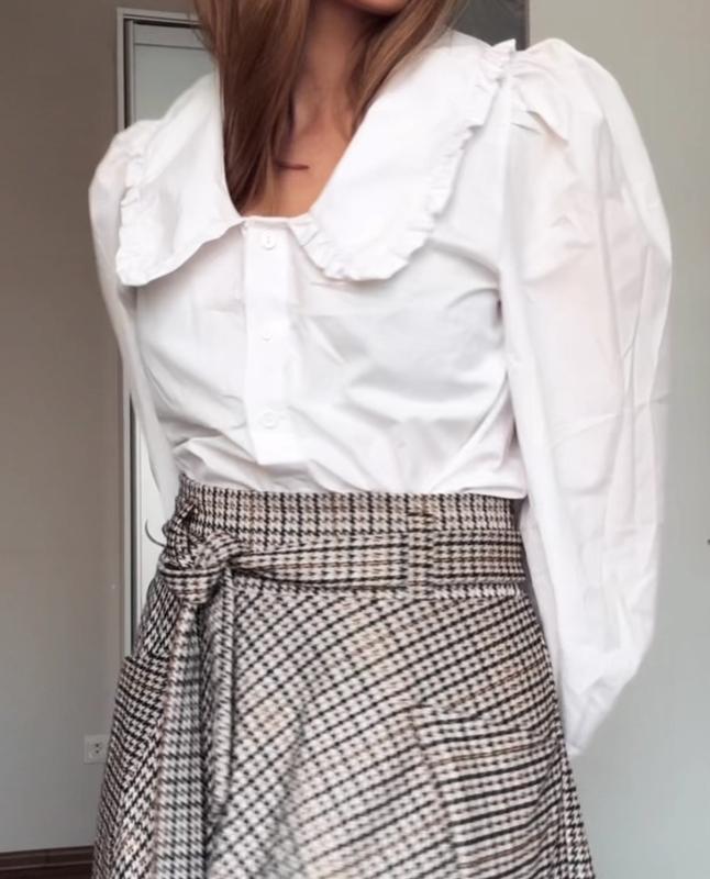 Вкорочена бавовняна ефектна блузка в класичному old money ПОГ 51 Длина 47 Рукав 60