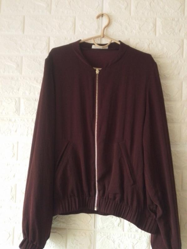 Стильный легкий бомбер, трендового цвета бургунд, с карманами. ПОГ-55, длина рукава -63, длина бомбера-57см