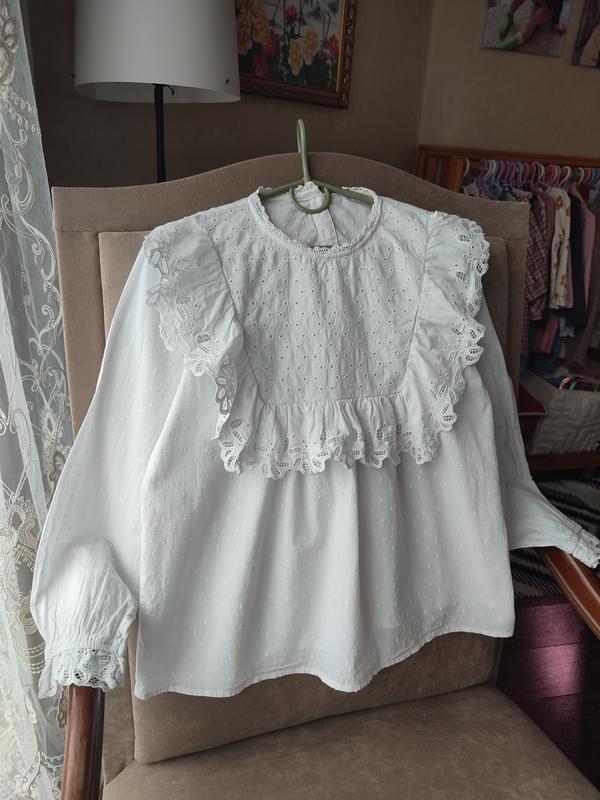 Стан - идеальный Указано, 13-14, но точно подойдет на хс. Замеры: Полуобхват плеч 36 см Полуобхват груди 45 см Длина рукава от плечевого шва 54 см Длина блузы 57 см