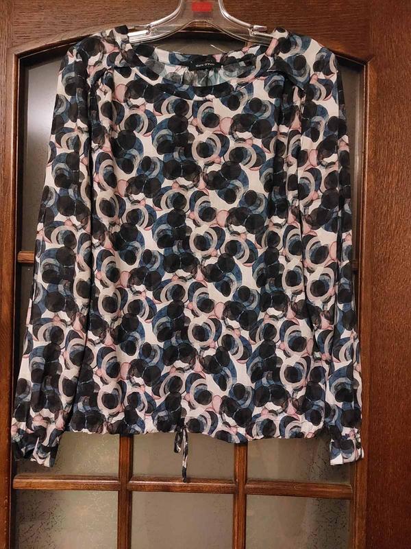 Красива віскозна блуза marc o polo. Внизу куліска на зав'язці. Третє фото розмите. Заміри Ширина 54, довжина 61, ШП 41.