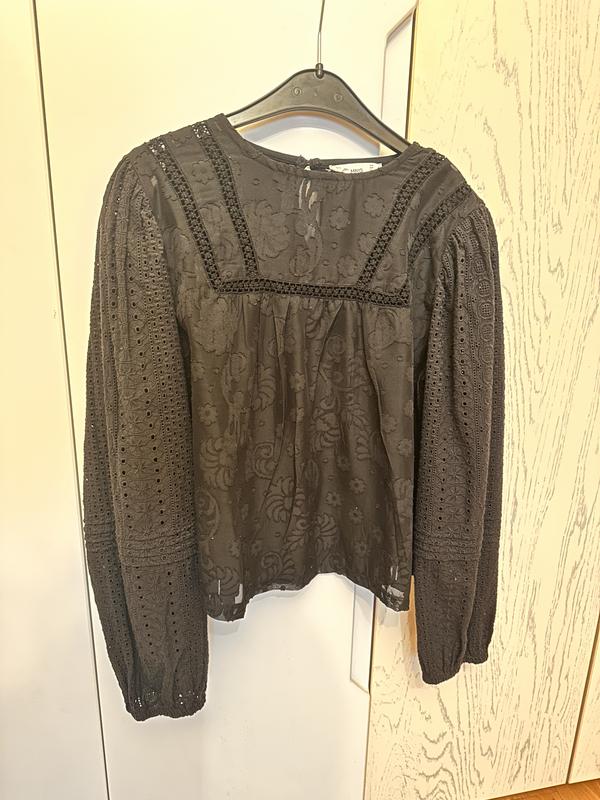 Чорна блуза, Mango. Прозора з переду, рукави з прошви. Вільного крою. Розмір М, підійде на розмір S. В ідеальному стані.