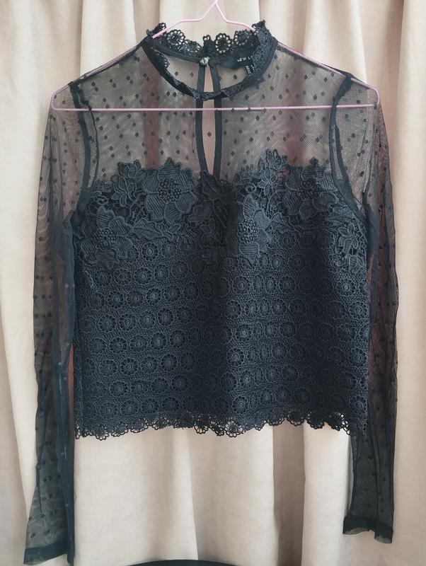 Черная блузка кружево с открытыми плечиками и прозрачными рукавами длина 47 длина рукава 61 ог42