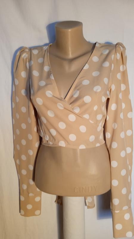 блуза цвета беж, горохи белые, пог-между подмышками46,рукав66, длина39см