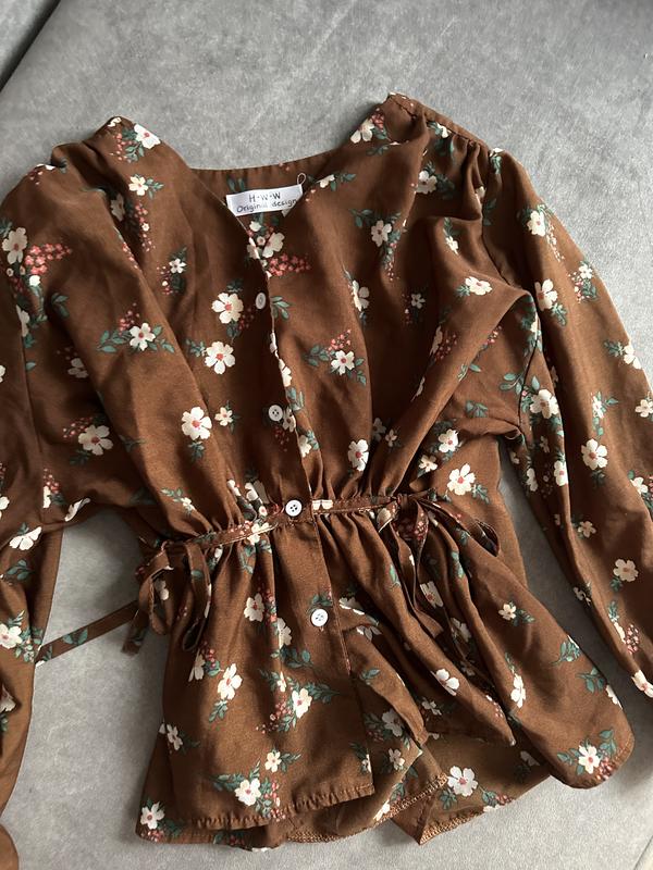Блуза коричневого оттенка с завязками спереди, зад чуточку удлиненный