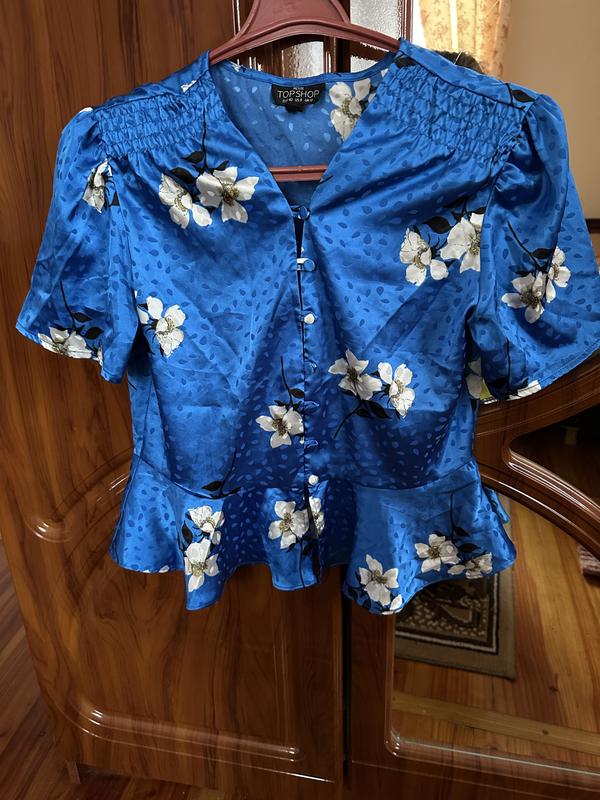 Синяя блуза в цветочный принт