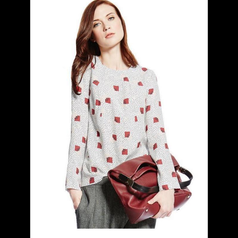 Симпатичная вискозная блуза фирмы M&S, размер 10. ПОГ - 48 см. ПО низу - 50 см. Длина - 65 см. Длина рукава от плеча - 58 см. Длина плеча - 10 см. Ткань: 100% вискоза. Состояние новой вещи.