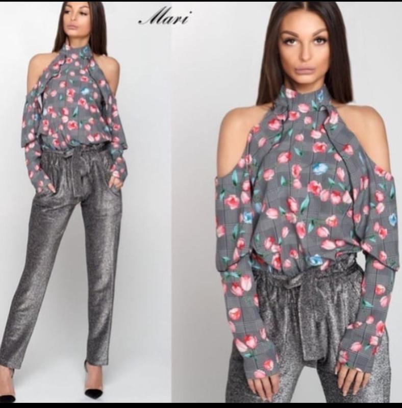 Рубашка в цветы открыты руки в клетку блуза
