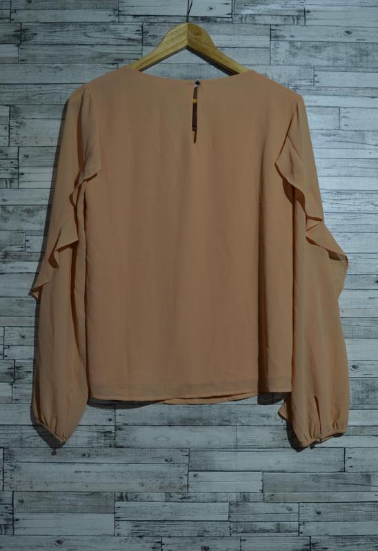 Красивая блуза,нежного цвета с воланами,вьющимися по рукавам)- Размер,, м,,или небольшая,, л,, Не тянется.на ог до 96см