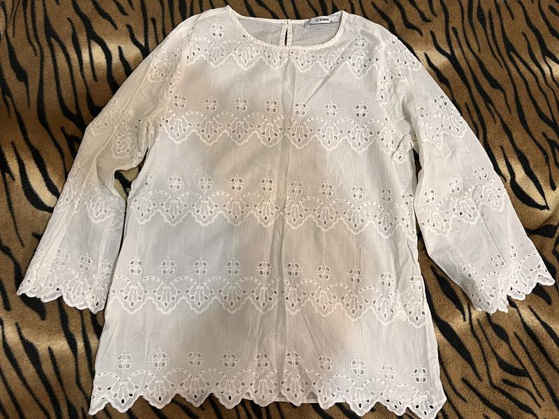 Блузка, просвечивается, с узорами.