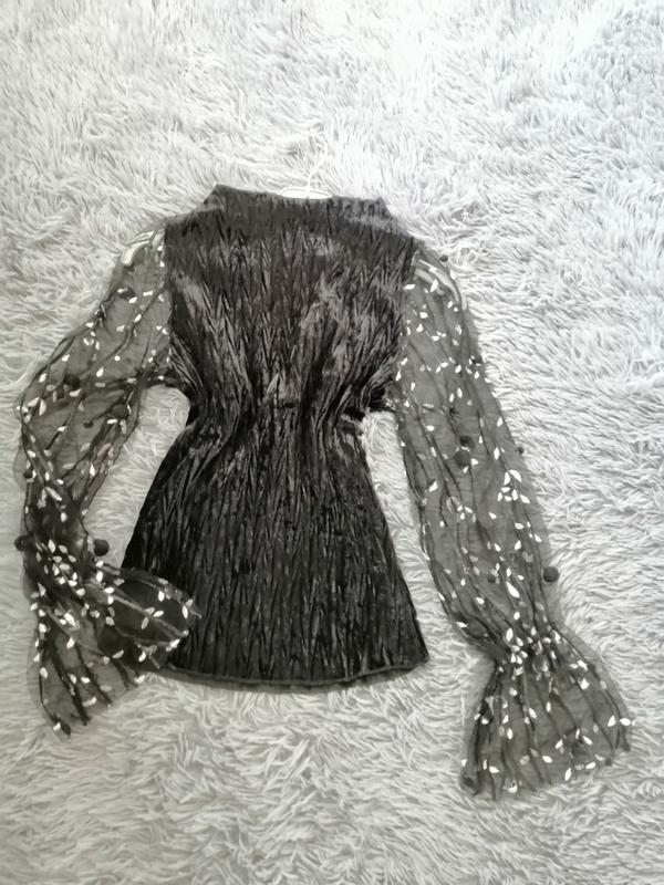 велюровый Бархатный Golf водолазка ВНЗ стрейч елка с прозрачными рукавами вышивка и воланами