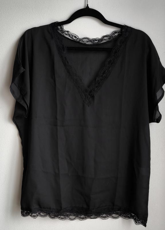 черная блуза свободного силуэта, рукав цельнокроеный. прозрачность очень незначительно. длина 67 НОГ 55 одевала несколько раз под пиджак, затем через зиму "выросла"