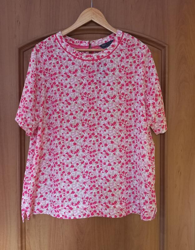 Блуза большого размера в розово-бежевых цветах, с коротким рукавчиком, размер 3XL замеры: плечи полуобхват - 39 грудь полуобхват - 62 талия полуобхват - 60 по низу - 62 длина - 66 цвет лучше всего передается на втором и третьем фото