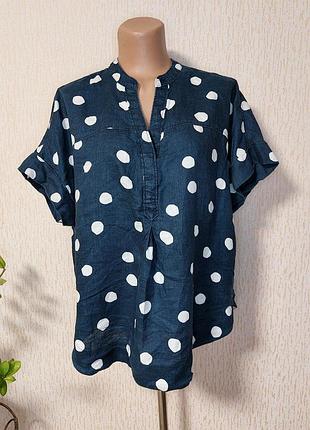 размер 46 евр льняная блуза M&S 100% льон пог 66,5 см поб 67,5 см длина 70/73см ПО рукава 24,5 см цвет темно синий под джинс в идеале