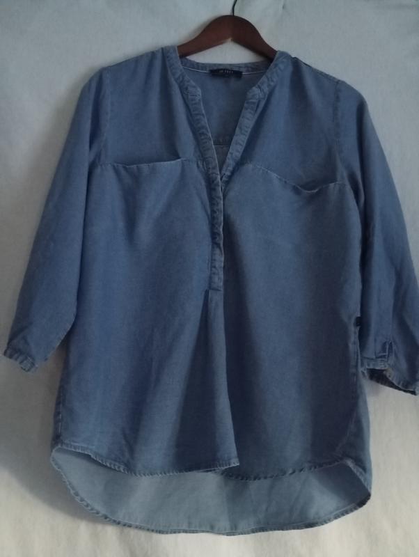 Джинсовая летняя блуза. с карманами. р.XS.S плечи 37. грудь 50.рукав 47. длина перед 65.спинка 70.свободная.