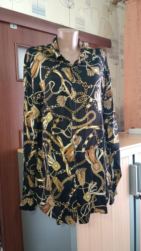 Шикарная черная рубашка в яркий принт, размер l - 16 - 50