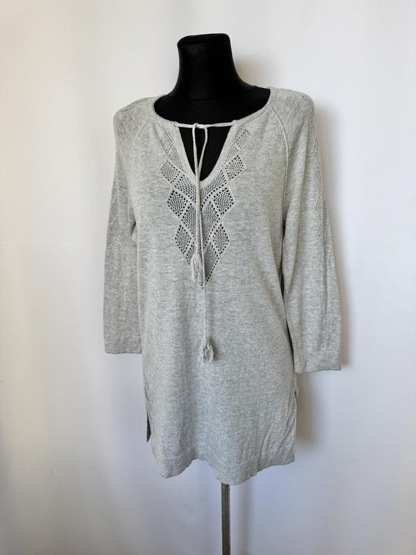 Sigrid olsen серая туника кофта блуза вязаная этно бохо в народном стиле ажурная с узором...
