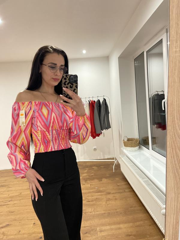 Очень красивая укороченная блуза в розовом цвете, на талии идет на резинке, манжеты также на резинках. Размер: универсальный S/M Замеры: 🌸 грудь - 50см 🌸 длина - 39см 🌸 длина рукава- 59см