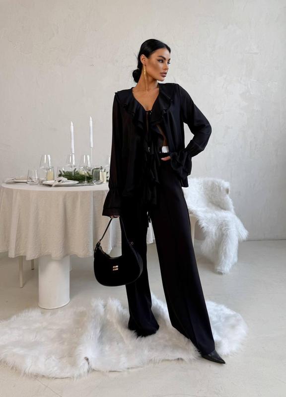 Романтичная блуза с воланами Артикул 80-68 Тканина: софт Размер: 42-44; 46-48 Цвет: черный, белый, бардо Цена: 800изна
