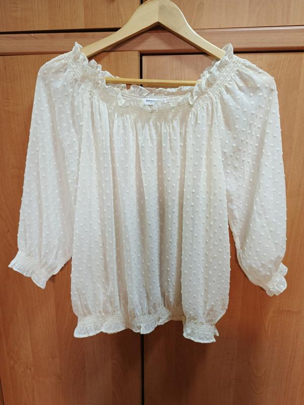 Полупрозрачная ткань, полиэстер, клинь не чисто белый, молочный полу охват груди 57 полуобхват бедер 42 (по резинке, не растягивая) длина 55 длина рукава 46