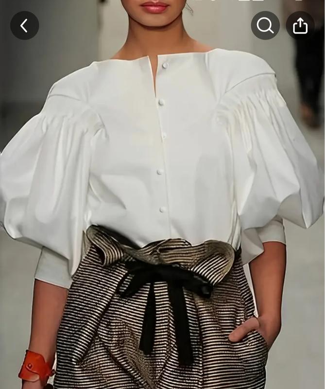 Белая блуза с широким красивым рукавом на манжете, спереди пуговицы. свободный крой