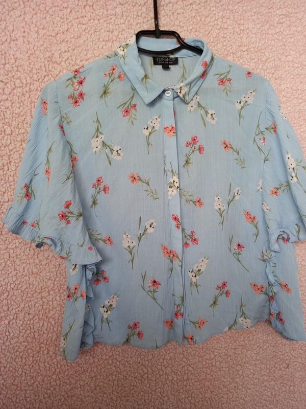 Блузка из вискозы, голубого цвета с цветами, длина 55 см. пог 48 см