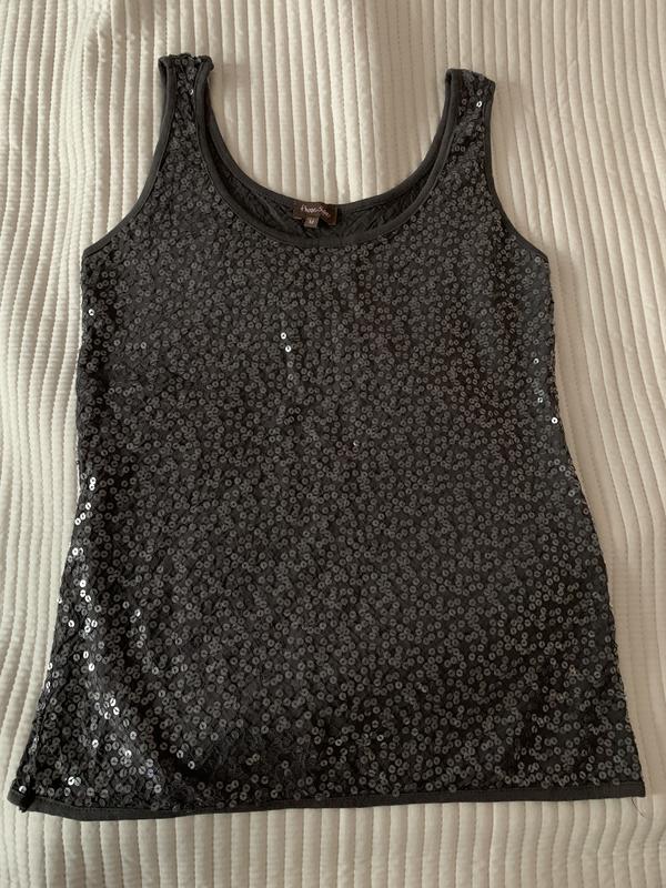 Коричневая блузка с пайетками. Длина 60 см, ПОГ -40, ПОТ -38, ПОБ-45см