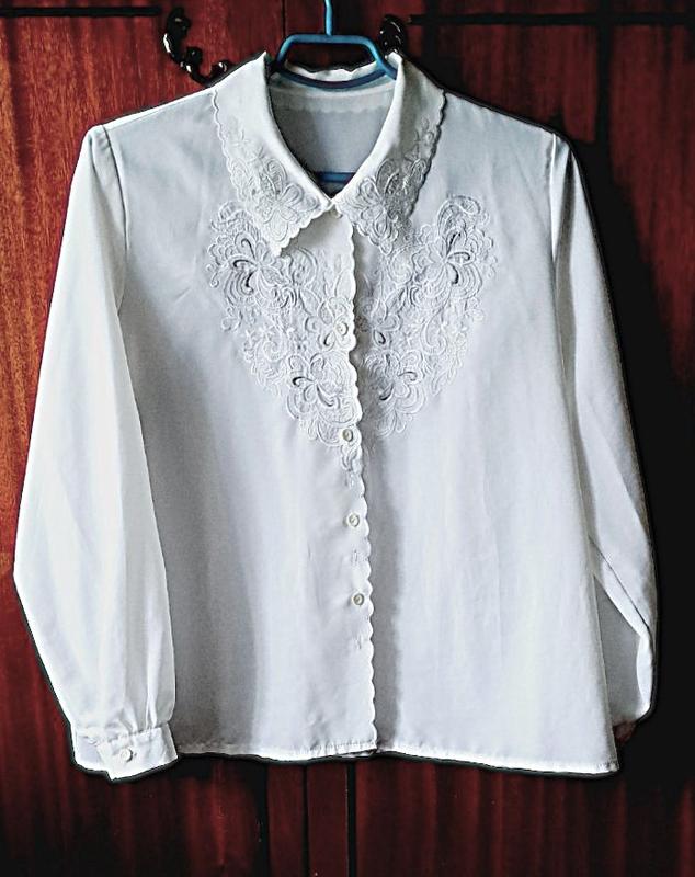 блузка прямого силуэта, вышивка белая с серебристым, бирок нет - по виду полиэстр - шелковистая, приятная на ощупь, состояние идеальное, фабричный Китай ширина 57 см длина по спинке 64 см длина рукава 58 см плечо 13 см доп. замеры и фото по запросу, продажа от 100 грн