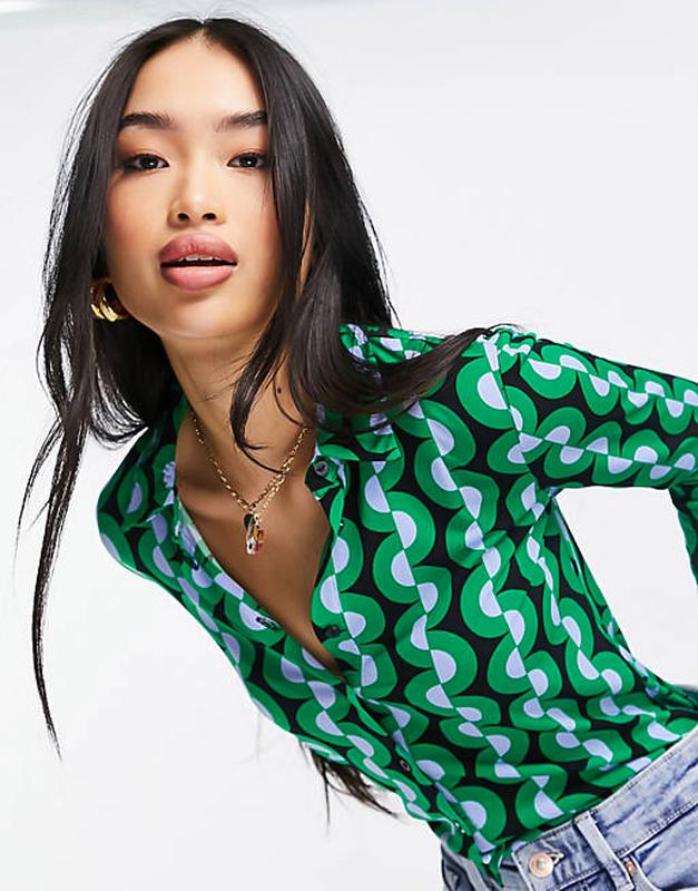 💚Стильная трикотажная блуза в ретро стиле от бренда Stradivarius. Геометрический принт. Эластичная, хорошо садится по фигуре.💎 Размер: S