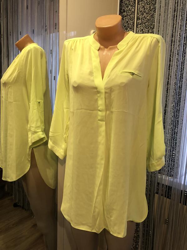 Стан новой.Материал вискоза.Длина заду 83см.Длина спереди 74см.Пог 52см.Рукав 46см.Плечи40см.Поб 56см