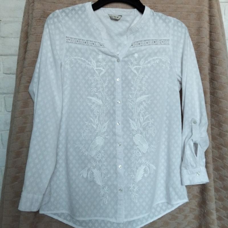 Нежная, изысканная белая блузка с невероятной вышивкой и кружевом. Имеет длинные рукава, которые можно подобрать. Длина изделия 66 см, длина рукава 58 см, объем груди до 104 см.
