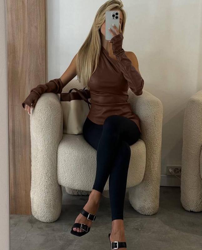 Женский топ с перчатками на одно плечо, из мягкой эко кожи