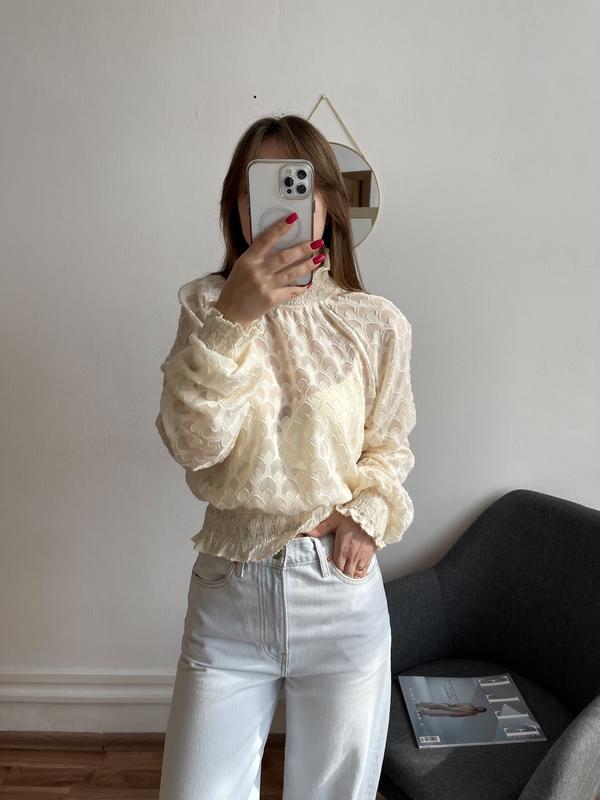 очаровательная ажурная блуза, полупрозрачный легкий материал состояние идеал ⠀ цена 679 грн ✔️ ⠀ размер 38 замеры: ПОГ 50 см, длина 55 см, рукав 71 см ⠀ параметри на фото: 167 см, 83-62-91