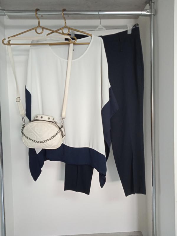 Стильная блузочка с коротким рукавом. По краю темный ободок. Легкая и удобная. Приятная на ощупь. Плотная плотная ткань. Шифон. Практически не тянется. Фасон прямой. Ложится свободно -оверсайз. Красиво спадает. Аккуратный вырез Есть размеры.