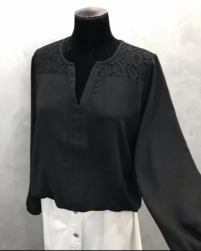 🔥💄КОСМЕТИКА У ПОДАРУНОК 🎁ПРИ ЗАМОВЛЕНІ ОДНІЄЇ ОДИНИЦІ ТОВАРУ🛍 📄СПЕРШУ ПРОЧИТАЙТЕ ОПИС ПРО МЕНЕ😊 🌹Чорна блуза на довгий рукав з елементами ажур; 🌿Chicoree 🌿Розмір-XL 🌿ОГ-59см 🌿ОТ-57см 🌿Плечі-39см 🌿Рукав-63см 🌿Довжина-71см