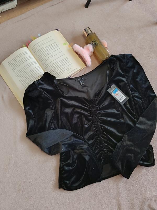 Черная бархатная блузка/топ с длинными рукавами. Размер 46 Товар не подлежит обмену и возврату.