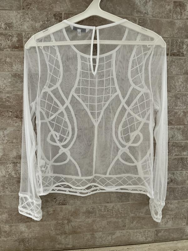 Ніжна як хмаринка, прозора блуза Next , розмір EUR 44 Довжина- 59 см, довжина рукава- 62 см, ширина плечей- 40 см, пог- 50 см. Можна носити як другий шар одягу так і самостійно.