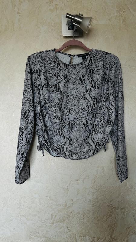 Стильная блуза, принт рептилия, по бокам стягивается, смотрит стильно с брюками или юбочкой с высокой талией.