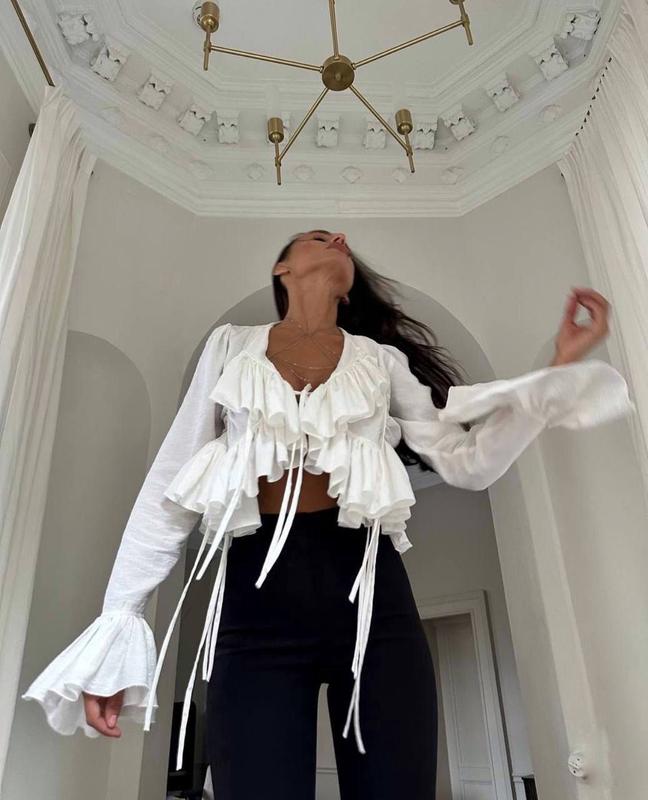 Арт 851-7098 Блуза с воланами ❤️ 🧶Ткань: американский креп 📐Размер: 42-46 🎨Цвет: молоко