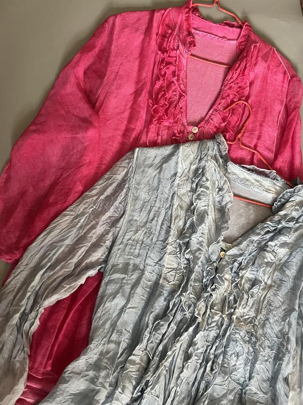 Натуральные новые туники Италия 🇮🇹 Размер универсальный Подойдет на р. M-L-XL Спереди и рукава - из натурального шелка, спинка трикотажная вискоза, чуть как в микро-рубчик. Внутри из переда есть тонкая подкладка-вискоза. В наличии две шт Цвет: Серо-голубой и малиновая фуксия Камера не может точно передать оттенки.