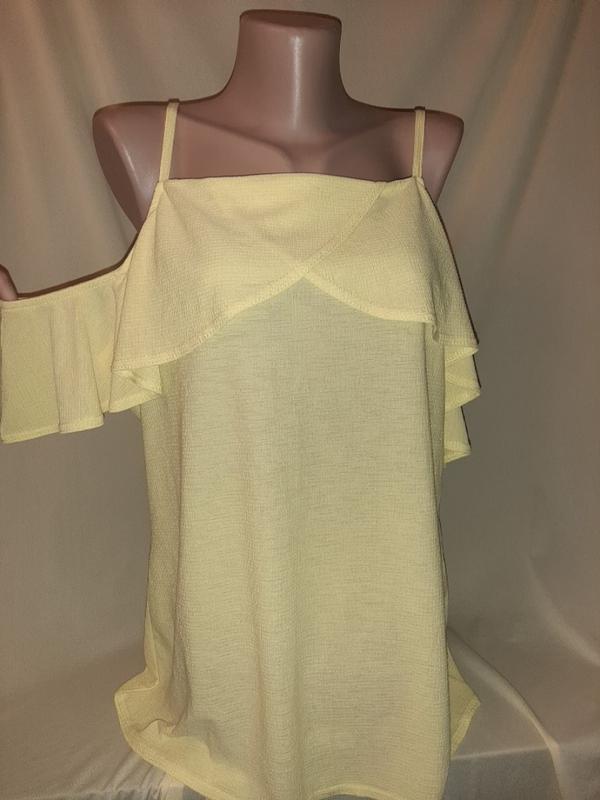 Блузка с открытыми плечами, желтая, состояние новой, размер UKON ПОГ - 54см + тянется, длина - 65см
