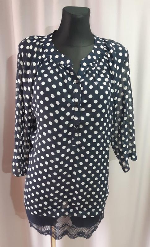 Блуза синяя горох Olko. 100% полиэстер. Размер М. ПОГ-53, Рукав-53, Длина-80. Новая.