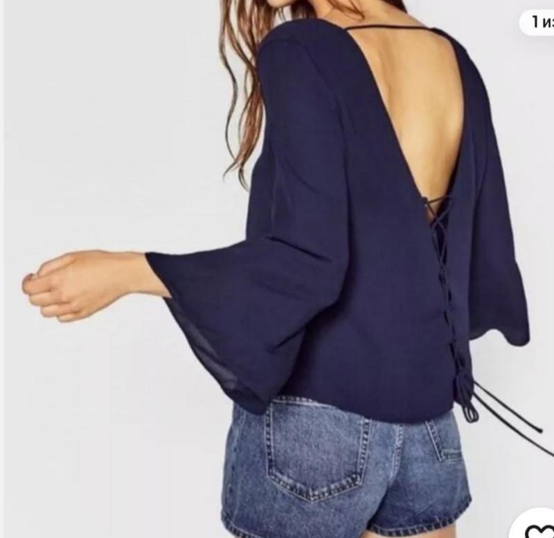 Zara trafaluc, блуза темно-синього кольору з v-подібним вирізом і шнурівкою