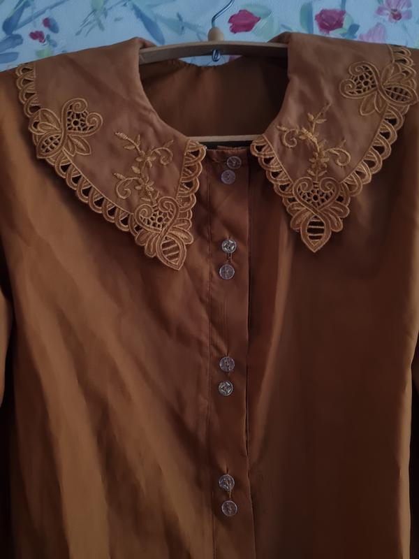 Продаю ретро-блузку цвета охры с длинным рукавом.