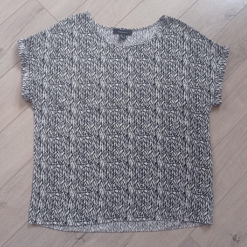 Блуза Atmosphere р.36.Длина 60см, под ручками 53см, рукавчик от горловины 23см. Бирка с составом срезана.На ощупь мягкая натуральная ткань( котон).Стан идеален